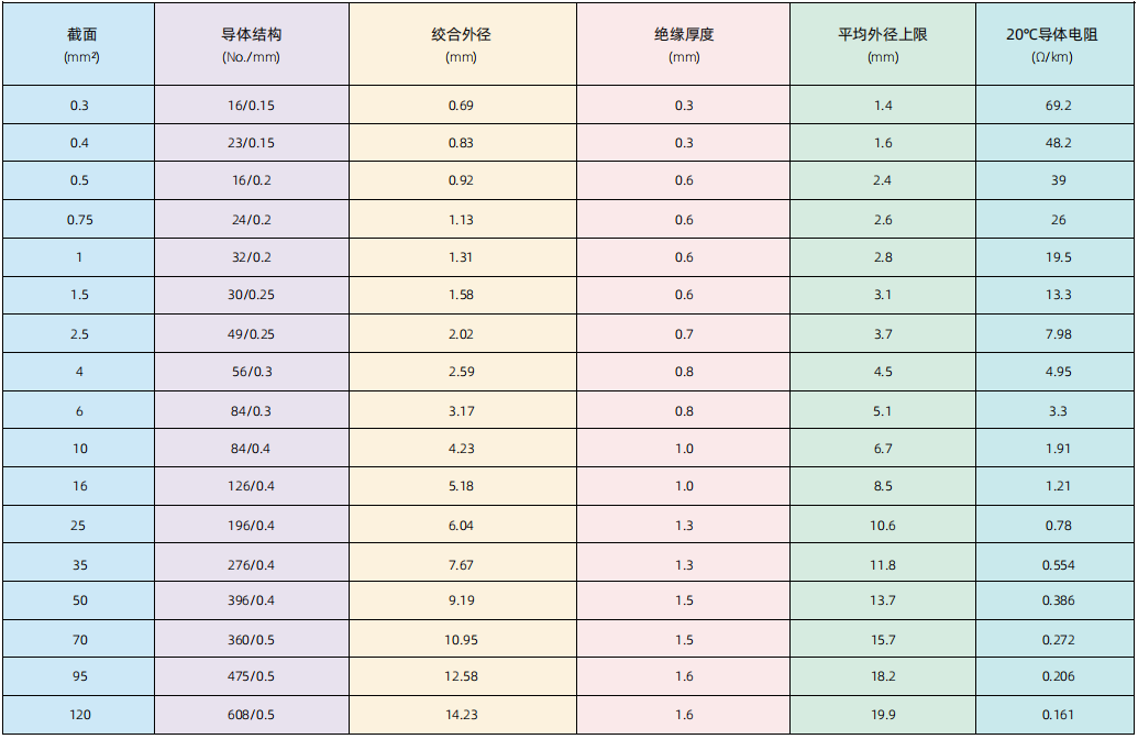 导体:0.3-120mm2绞合软裸铜线绝缘:PVC聚氯乙烯、DQPVC
